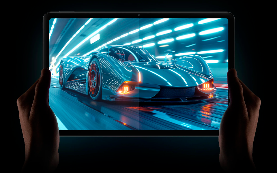 Пиковая яркость 600 нит позволяет пользоваться планшетом на улице, экран сохраняет отличную видимость картинки в солнечный день. Для дополнительного улучшения качества видео используется технология Dolby Vision. Частота обновления экрана составляет 120 Гц, работа системы и переходы ощущаются плавными. Сертификаты TUV Rheinland подтверждают, что дисплей поддерживает технологии заботы о зрении. Экран защищен от царапин стеклом Gorilla Glass 3.