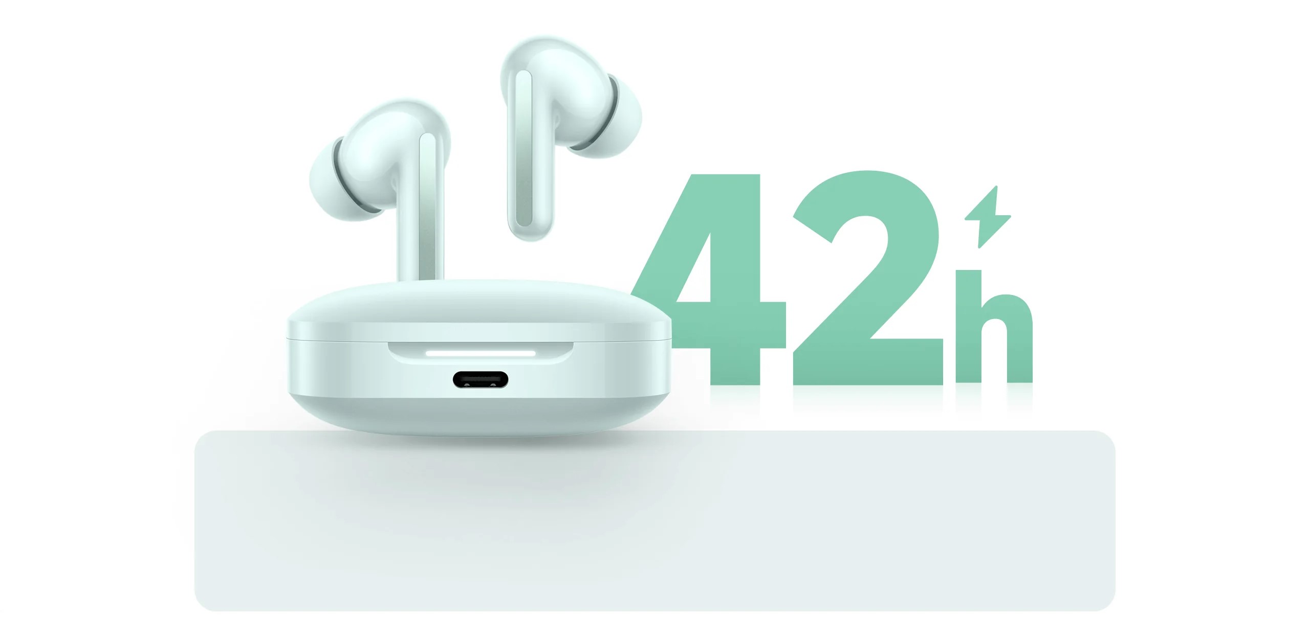 При использовании зарядного кейса время автономной работы достигает до 42 часов. Поддерживается также сверхбыстрая зарядка - 10-минутная зарядка обеспечивает 4 часа воспроизведения музыки.