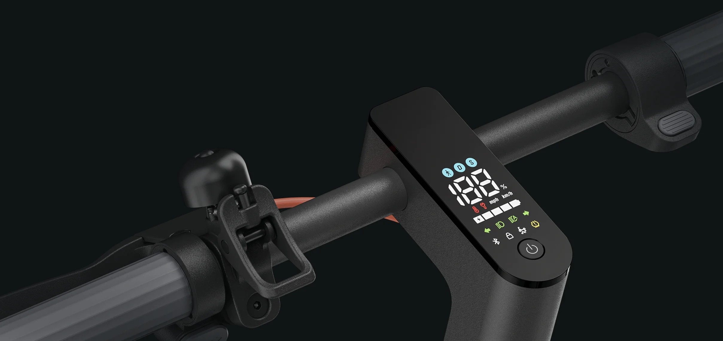 Удобная конструкция позволяет с легкостью проверять скорость, оставшийся заряд, сигнал поворота и состояние транспортного средства во время движения.
