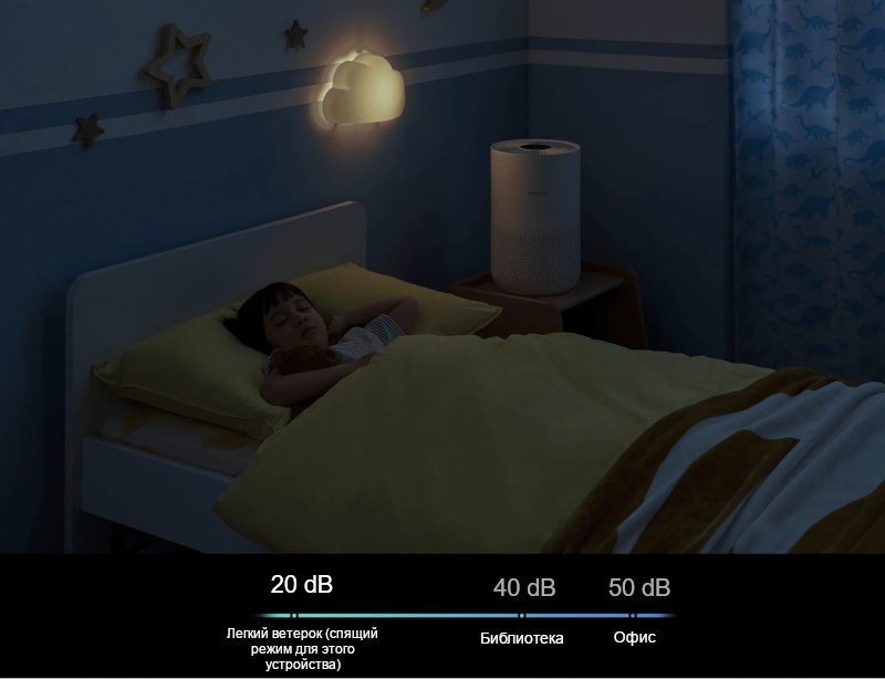 В ночном режиме уровень шума составляет всего 20 дБ*, а подсветку дисплея можно отключить.
