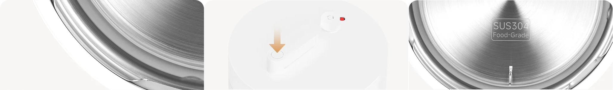 Прочная армированная сталь толщиной 1,2 мм обеспечивает устойчивость мультиварки-скороварки Xiaomi Electric Pressure Cooker к высокому давлению. Крышка изготовлена из пищевой нержавеющей стали 304 и весит около 1,5 кг. Она прочная, безопасная и надежная.