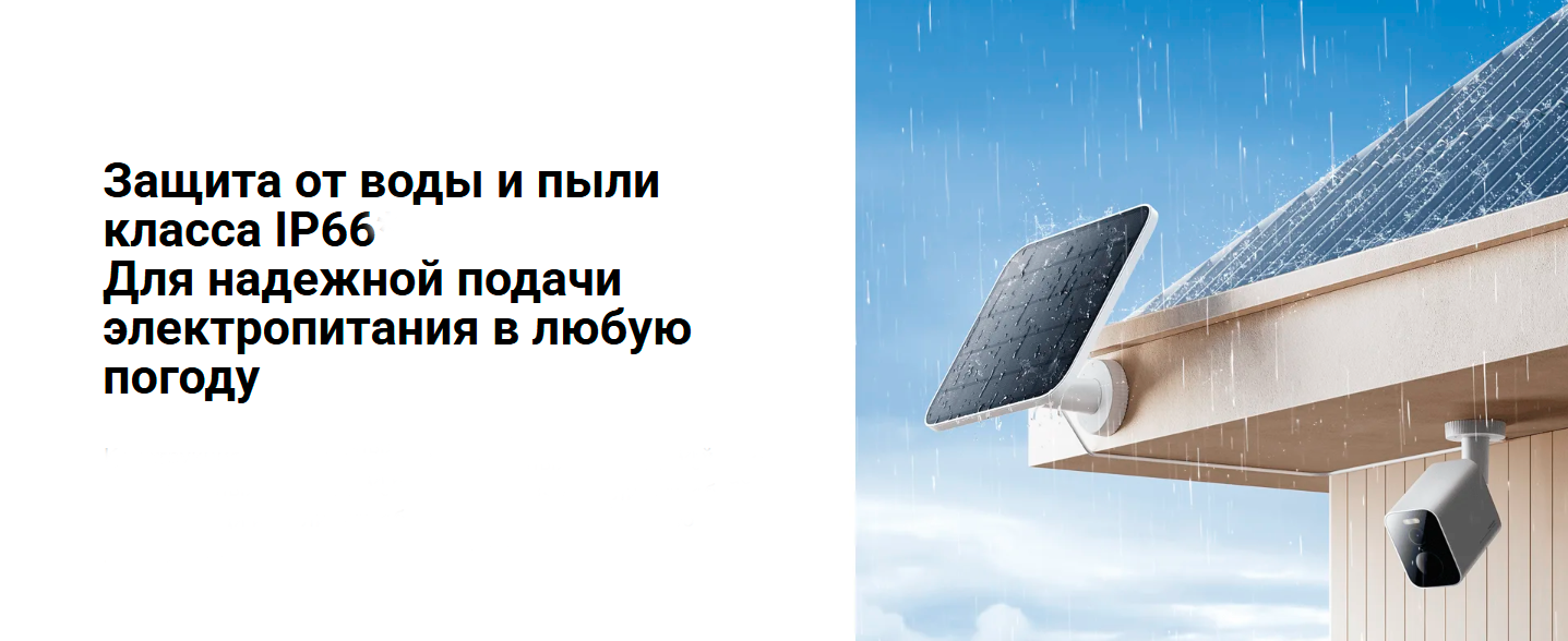 Панель выдает напряжение 6.8 В и мощность до 5 Вт, обеспечивая стабильную подзарядку камеры при наличии солнечного света. Это удобное решение для установки в местах без постоянного доступа к электричеству.