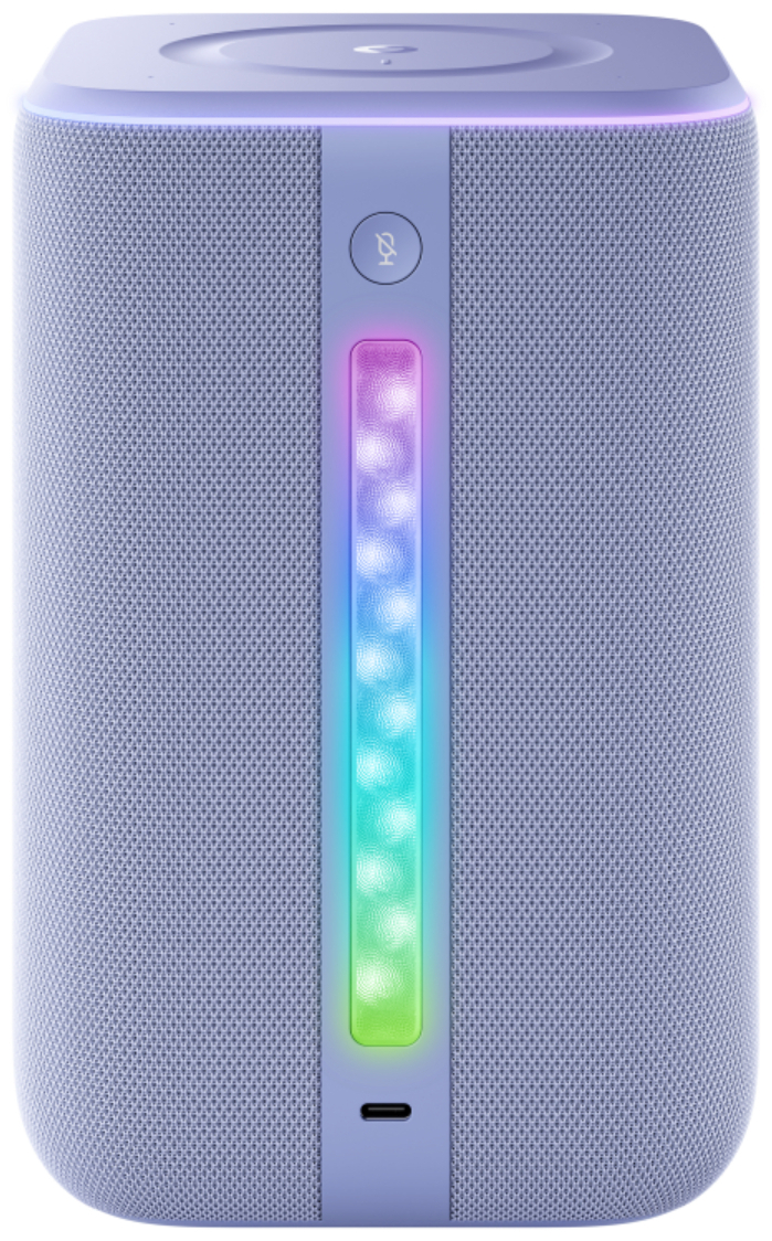 Для питания используется адаптер (через USB-C/PD), а встроенная подсветка и дисплей добавляют визуальную атмосферу: свет и информация отображаются прямо на корпусе, что повышает комфорт в домашней обстановке. Сенсорная панель помогает управлять колонкой вручную, если голос недоступен. Устройство рассчитано на питание от сети — автономный аккумулятор не предусмотрен.