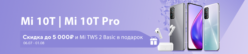Скидка 5 000 ₽ на Mi 10T | Mi 10T Pro и Mi TWS 2 Basic в подарок