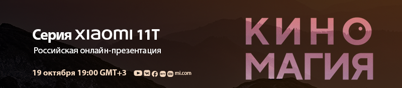 Главное событие года — российская онлайн презентация смартфона 11T и других новинок Xiaomi! Приготовьтесь испытать весь спектр эмоций и погрузиться в настоящую «Киномагию».