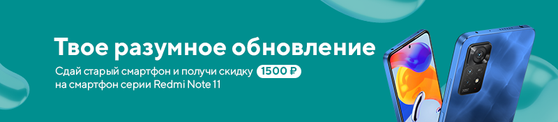 Пришло время расстаться со своим старым смартфоном? Сделайте это с выгодой! Участвуйте в нашей программе Trade-in: вы сдаете свой старый смартфон и получаете скидку 1500 руб. на покупку смартфона серии Redmi Note 11 в нашем магазине!